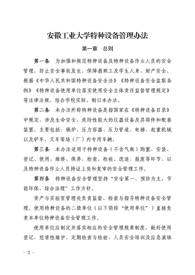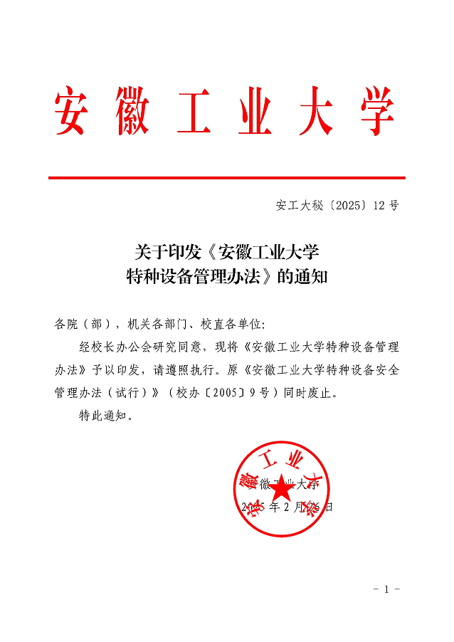 关于印发《安徽工业大学特种设备管理办法》的通知
